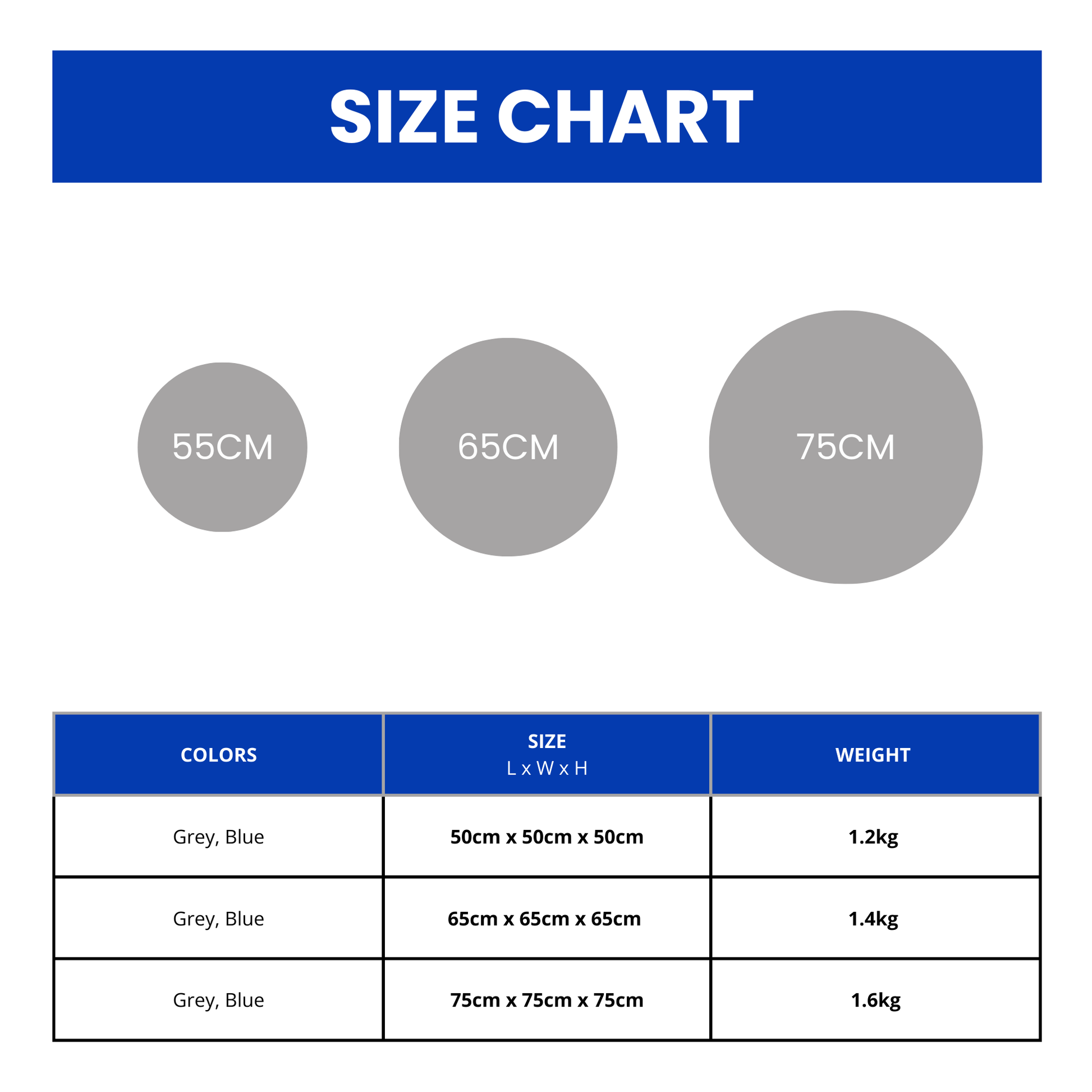 Product Dimensions: 55cm / 65cm / 75cm (diameter when fully inflated)
